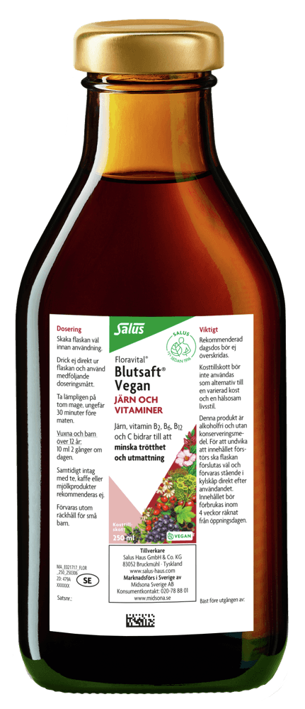 Förvaras utom räckhåll för små barn. Rekommenderad dagsdos bör ej överskridas. Drick inte direkt ur flaskan. Kosttillskott bör inte användas som ett alternativ till en varierad kost. Tänk på vikten av en mångsidig och balanserad kost och en hälsosam livsstil.